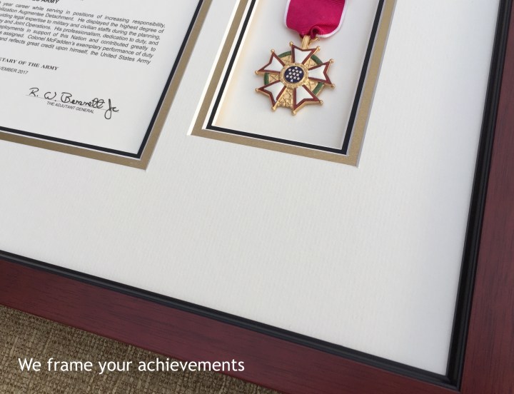 We can incorporate medals and other items into your diploma frame